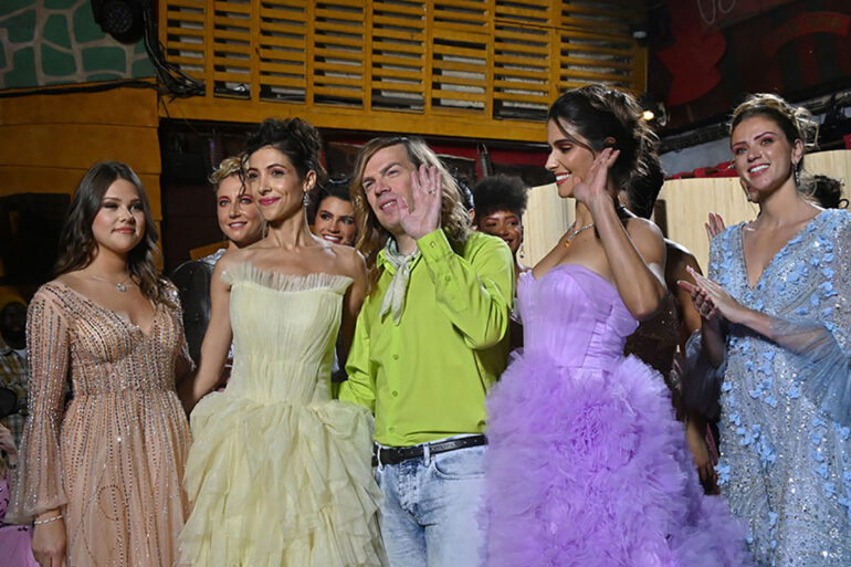 Miss Paris 2025 Candice Gauch poupoupidoute tandis que Christophe Guillarmé, se tient à carreau entre Elena Faliez, et Claudia Carpentier